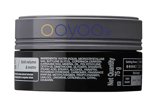 در ترکیبات آن از کائولین (خاک رس آرایشی) برای جذب چربی اضافی و ایجاد نمای مات استفاده شده است. همچنین وجود مومهای گیاهی و میکروکریستالین باعث میشود موها انعطاف پذیر بمانند و دچار خشکی مفرط نشوند.