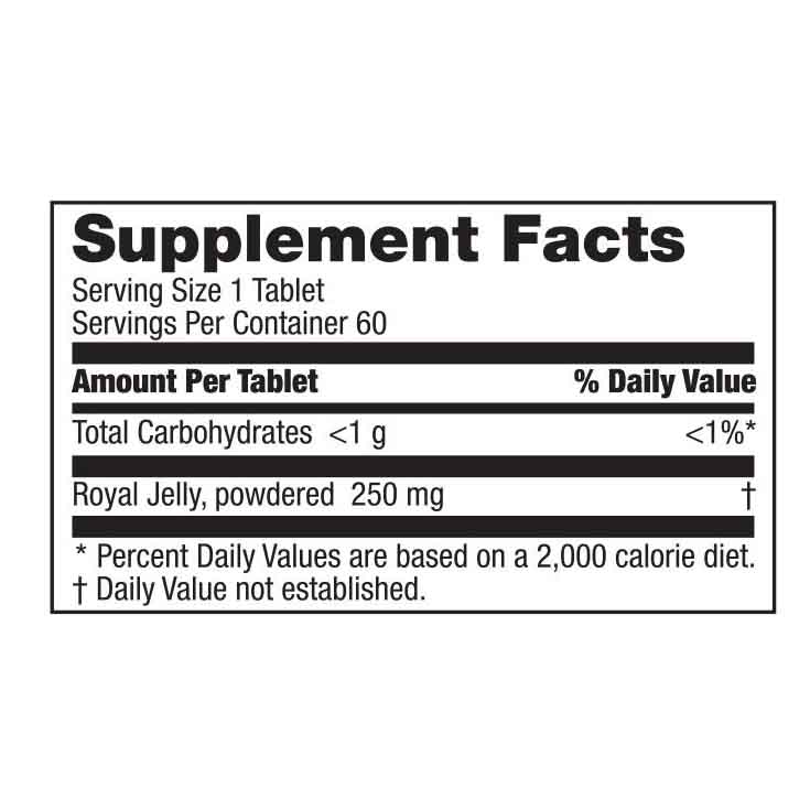 ترکیبات اصلی: پودر ژل رویال خالص، ویتامینهای A، C، D، E، B-complex (بهویژه B5)، آمینواسیدهای ضروری، کلسیم، مس، آهن، فسفر، پتاسیم، سیلیکون، گوگرد، اسید فولیک، بیوتین، اینوزیتول، استیلکولین، رویالیزین (اسید چرب با خواص ضدباکتریایی).